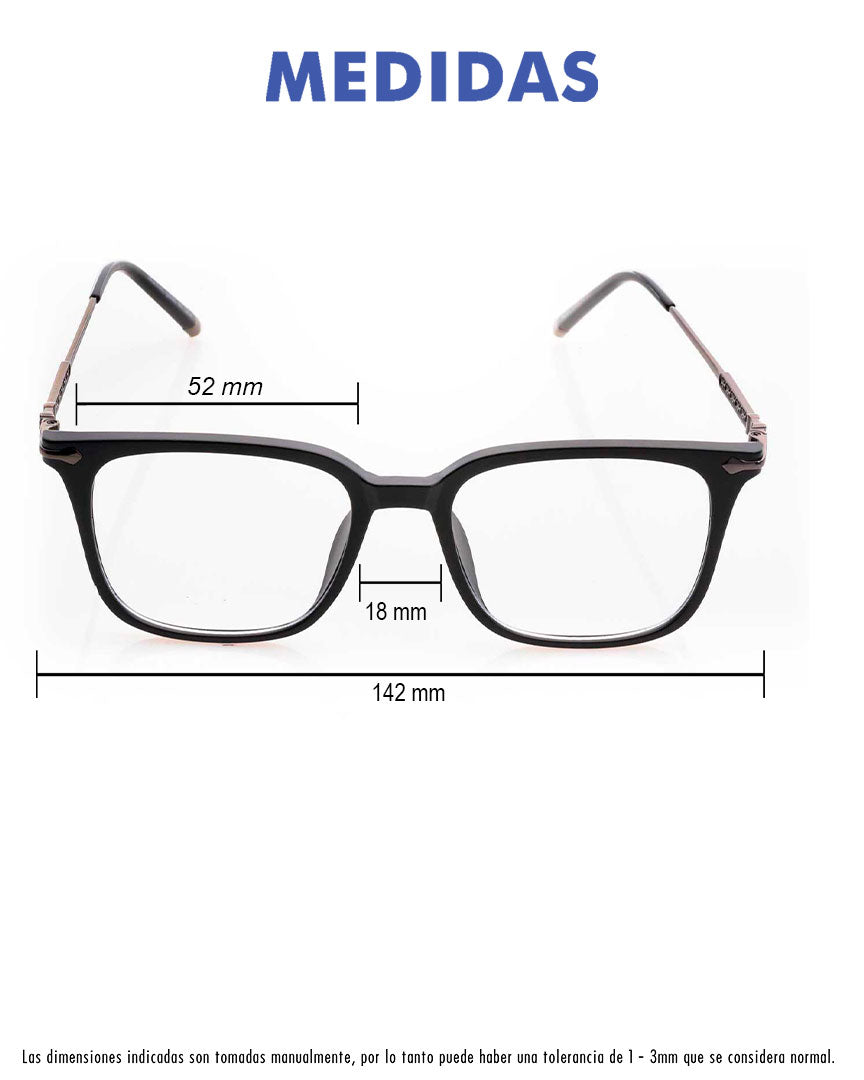 Compara las siguientes medidas con tus gafas favoritas en casa, así tendrás la tranquilidad de escoger las ideales para ti. De todos modos, ten cuenta que puedes hacer cambio o solicitar devoluciones: